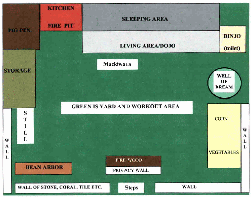The yards served as the workout area as well as home for the vegetables and farm life that supported the family's existence. Coral covered by dirt allowed the coral to protrude and cause some grief when walking, turning or jumping.