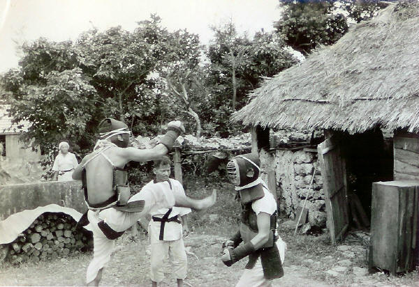 Sensei and mamasan watching kendo fight in Kyan between Harry G. Smith and Art Smiley.