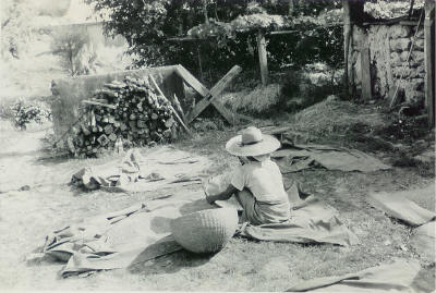 He had two sons, one was older, one was younger, of course. One time the younger one was replacing the soles on his daddy's shoes. He did it with a hammer, a nail and some heavy twine and he would make a hole, he would force the twine through with something like a needle and then he would tie it off.