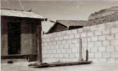 The wall at the entrance to Shimabuku's house in Kyan, the entrance to the yard. Like I told before, it was a coral wall covered over with some kind a stucco. I remember one time seeing Shimabuku just pounding the wall with his fist, looked like just out of shear boredom or just working out, but as he was doing it he was chipping off pieces of it. After a while the wall got pretty ratty. And he replaced it with the money that he was getting from lessons. He replaced the wall and he also put down a very, very fine, a thin coat of concrete over the coral, the coral and dirt yard in front of his home. So far from what I remember of Shimabuku and the house.