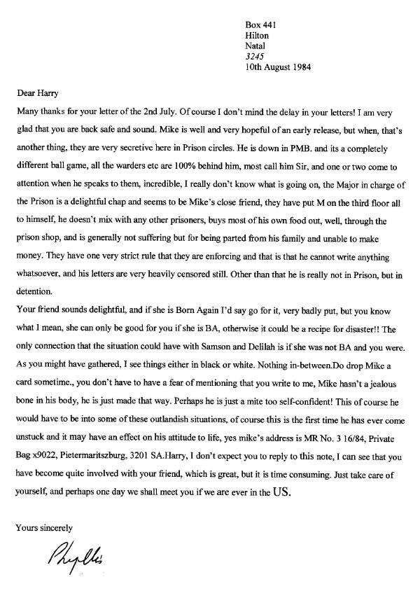 A letter to Harry G. Smith, August 10 1984